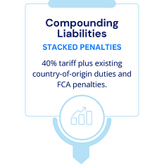 The four primary evasion schemes—undervaluation, misclassification, origin deception, and transshipment—each carry potential penalties that can exceed the value of affected merchandise. With False Claims Act treble damages, criminal liability exposure, and the new 40% transshipment penalty, total exposure can reach levels that threaten corporate viability.