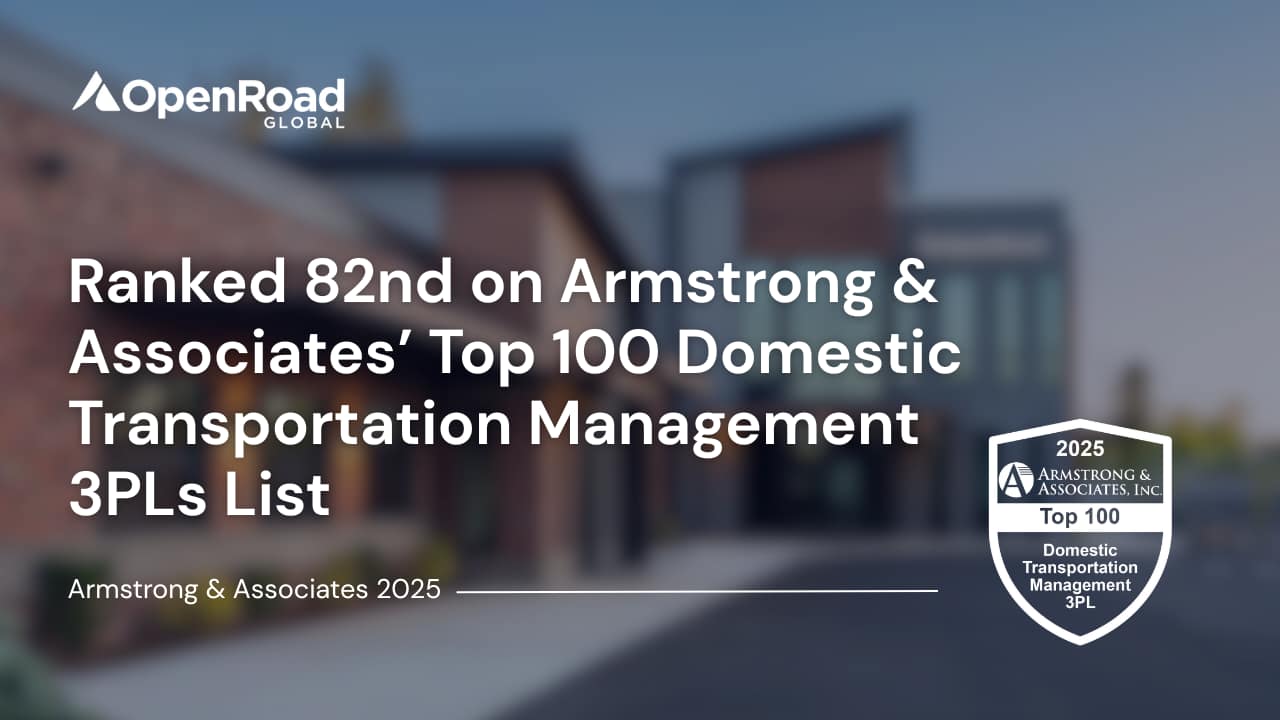 Dallas, OR – October 1, 2025 | OpenRoad Global is honored to announce its debut on Armstrong & Associates’ prestigious list of the Top 100 Domestic Transportation Management (DTM) 3PLs, securing the #82 position. This recognition underscores the company’s commitment to excellence in logistics and supply chain solutions.